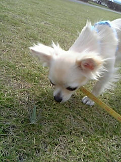 それを追いかける、また逃げるの繰り返しで、何を思ったかうちのワンコはパクリとバッタをくわえてしまった~。(゜ロ゜)ギョエ!!