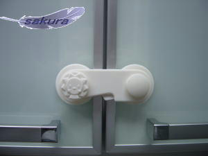 子供のいたずら防止用のもので、テレビ台とかにつけて扉が開かないようにする道具らしいです。
